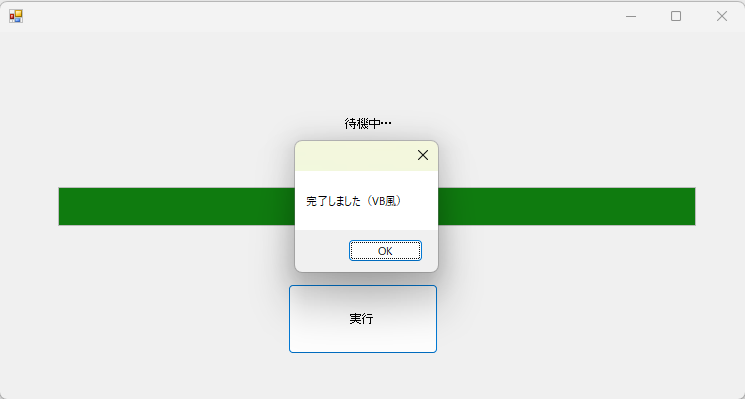 重い処理を実行⇒プログレスバーの表示を更新⇒完了時メッセージ