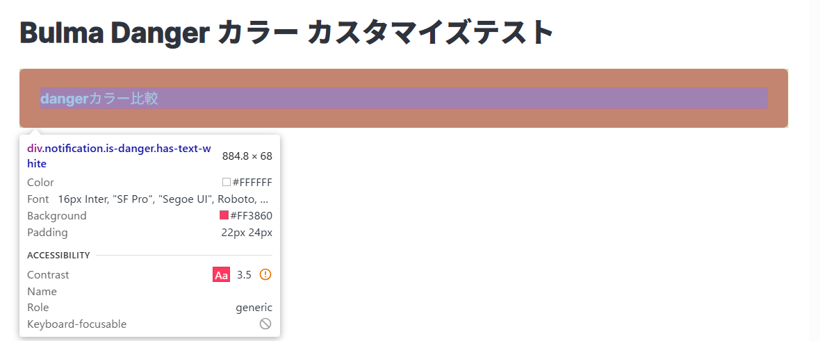 </style>has-text-whiteを追加すれば白に戻ります。<div class="notification is-danger has-text-white">