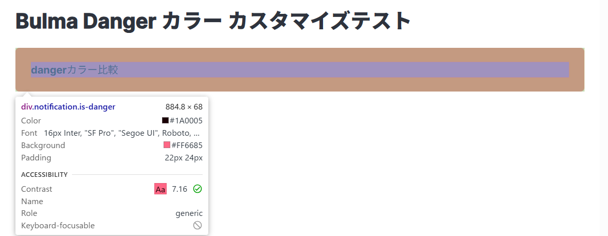 Bulmaで定義されている色のdangerが変わってしまっていました。