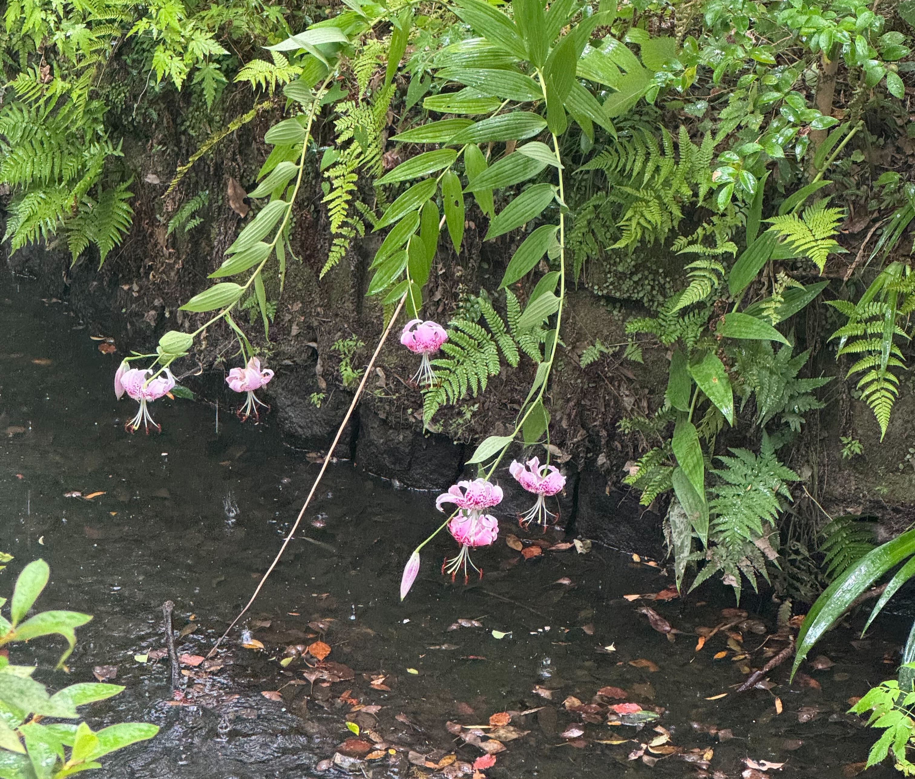 特徴:淡いピンク色のユリで、反り返りは少ないが細長い葉と生育環境が似ている。上向きに咲くことが多い。