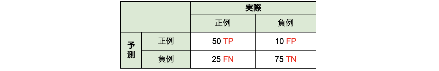 偽陰性(False Negative):実際は陽性で予測は陰性 → 誤って陰性と判定